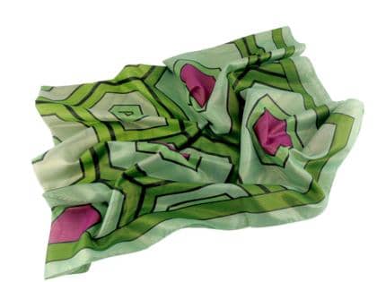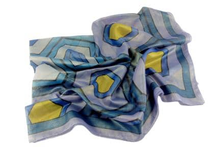 42 x 42 cm großer Schal mit Motivdruck auf Seidentwillstoff.