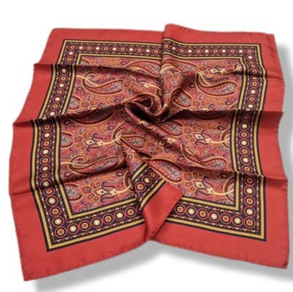 SILK TWILL FABRIC SCARF CAN ALSO BE USED AS A BANDANA.